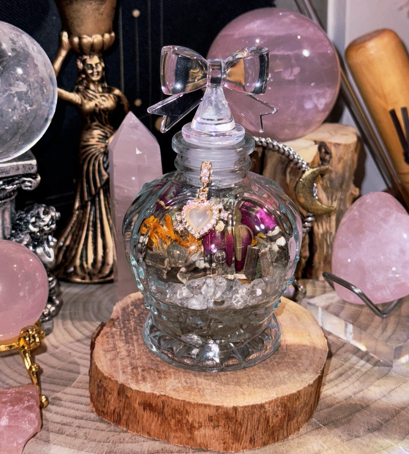 In our creations, the herb speaks and the crystal listens. One offers the flow, the other offers the anchor. It isn’t an addition; it’s a symphony.